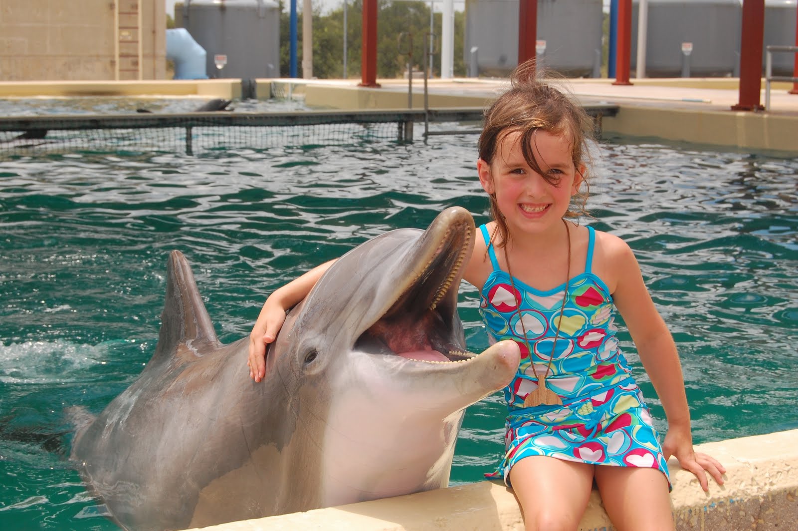 Then we each got to 'teach' the dolphin a trick, or should I say, perform a trick with the dolphin. Its hard to tell in these pictures, but Emma twirled "like a ballerina" to make the dophin spin - too cute!